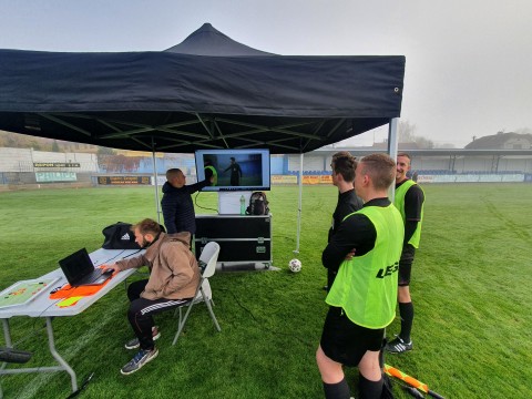 První kamera míří na hlavní tribunu, ta bude snímat cvičící při posuzování ofsajdových situací. Pod tribunou je stavěn první stan s LCD obrazovkou, kde budou ofsajdové situace rozebrány. Druhý potom roste na okraji pokutového území, pod ním najdeme kameru a další LCD obrazovku. Kamera zde bude snímat rozhodčí při managementu přímých volných a pokutových kopů. Třetí stanoviště vzniká v rohu hrací plochy, kde bude nacvičována správná signalizace praporkem a pohyb podél pomezní čáry.