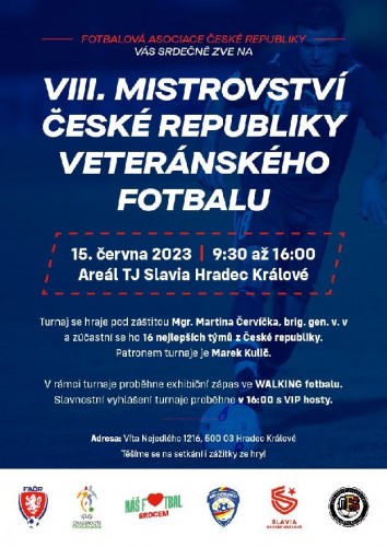 Pozvánka na mistrovství ČR veteránského fotbalu Hradec Králové - 15. 6. 2023