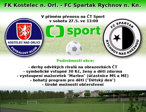 Výkop utkání FK Kostelec nad Orlicí – FC Spartak Rychnov je stanoven na