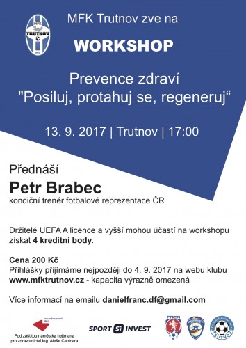 MFK Trutnov zve všechny zájemce na setkání s reprezentačním kondičním trenérem Petrem Brabcem. Workshop se koná dne