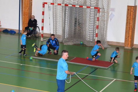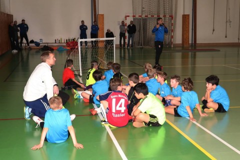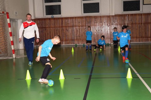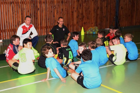Kamil Kaplan (Grassroots trenér mládeže pro OFS Rychnov n.K.) předvedli přítomným cca 25 trenérům, rodičům a klubovým funkcionářům ukázkovou tréninkovou jednotku pro kategorii přípravek za účasti téměř 20 dětí.
