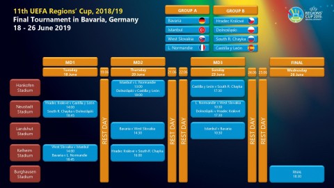 Ve druhé skupině jsou pořádající Bavorsko, Istanbul (Turecko), Západní Slovensko a Ligue de Normandie (Francie)
