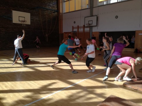 Po úvodní teoretické části, kdy byli učitelé seznámeni se základními principy, které bychom rádi v hodinách tělesné výchovy vídali, následovala praktická část, kdy se učitelé sami aktivně zapojovali do ukázkových cvičení. Poté následovaly další dvě hodiny přímo s dětmi.