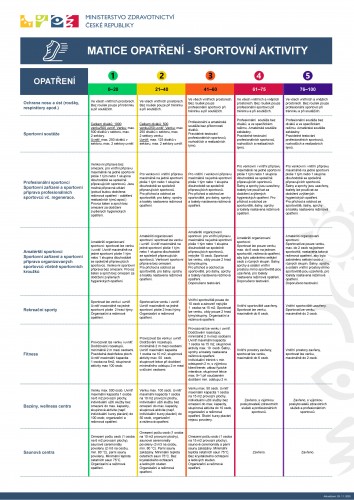 Z AKTUÁLNÍ COVID SITUACE4) V rámci trénování na sportovištích konstatuji, že stále platí tabulka covid sport, kterou přikládám v příloze; FAČR dělá maximum pro to, aby se amatérské soutěže v ročníku 2020/21 mohly dohrát. Snažíme se apelovat na všechny zainteresované státní subjekty, které mohou pomoci s restartem výkonnostního sportu, aby v tomto smyslu v kooperaci se sportovními svazy aktivně a bez odkladu konaly.