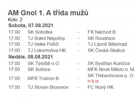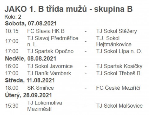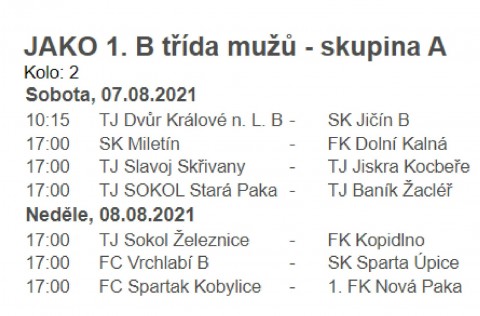 Chlumecké béčko se utká ve velmi zajímavém zápase s hradeckou Slávií a utkají se tak týmy, které budou hrát v letošní sezóně určitě ve vrchních patrech tabulky. V souboji týmů, které v prvním kole bodovaly naplno se utká FK Jaroměř proti tradičnímu soupeři z Hořic.