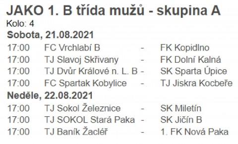 Krajské B třídy rovněž odehrají své další kolo, zde je nabídka zápasů těchto soutěží