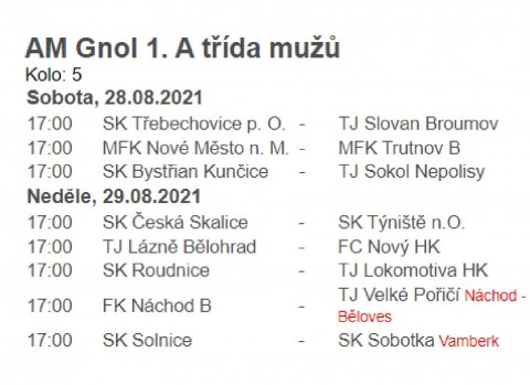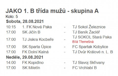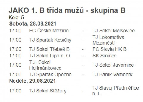 B třídy odehrají rovněž svá pátá kola s řadou zajímavých zápasů, jejich přehled naleznete ZDE: