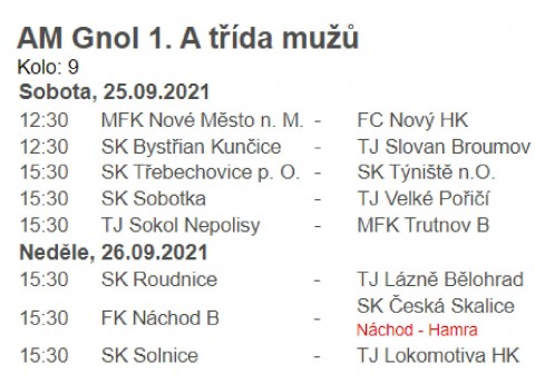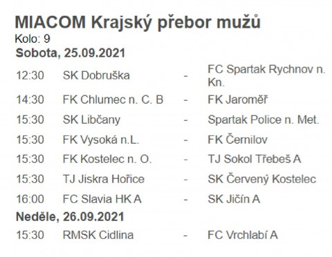Pozvánka na 9. kolo krajských soutěží dospělých Královéhradeckého kraje