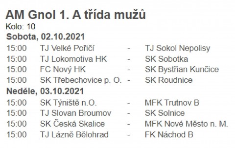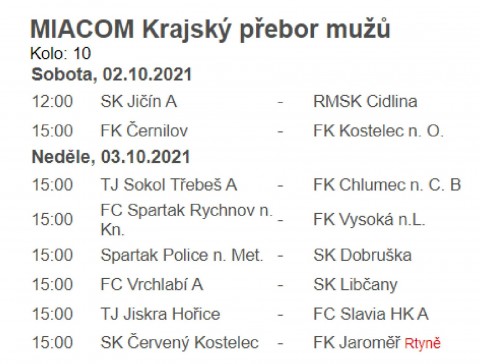 Nejvyšší krajské soutěže dospělých pokračují o víkendu svým dalším, tentokrát 10. kolem. Ve všech těchto krajských soutěží nebude nouze o zajímavé utkání, derby utkání, nebo doslova šlágry kola.