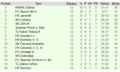 RMSK Cidlina, který ještě neztratili ani bod a má náskok na svého hostitele 5. bodů.