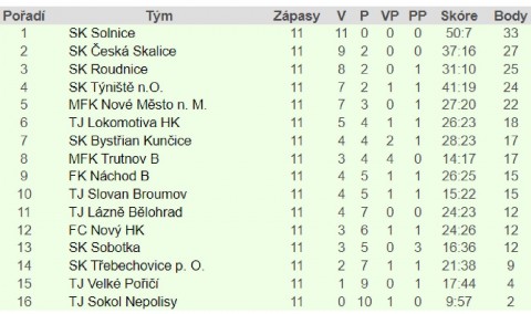 České Skalice, která přivítá dosavadního lídra soutěže ze