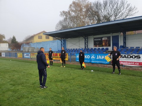 Krátce před půl desátou vychází z kabin 15 rozhodčích OFS Náchod, najdeme mezi nimi jak mladé talenty, tak i zkušené kolegy. Zvláště těm starším pak patří hluboká poklona za to, že se stále chtějí zdokonalovat v rozhodcovském řemesle a že některým i po více jak 20 letech činnosti nechybí elán do dalšího vzdělávání.