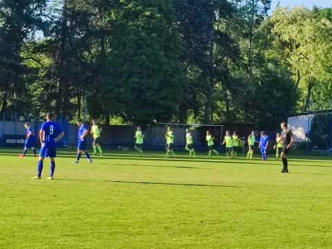 První poločas mnoho vzrušení před oběma brankami nepřinesl. Domácí si udržovali mírnou územní převahu, ale do přímého ohrožení naší branky se dostali pouze jednou, když hlavičku Veselého bez problémů Baláž zneškodnil.