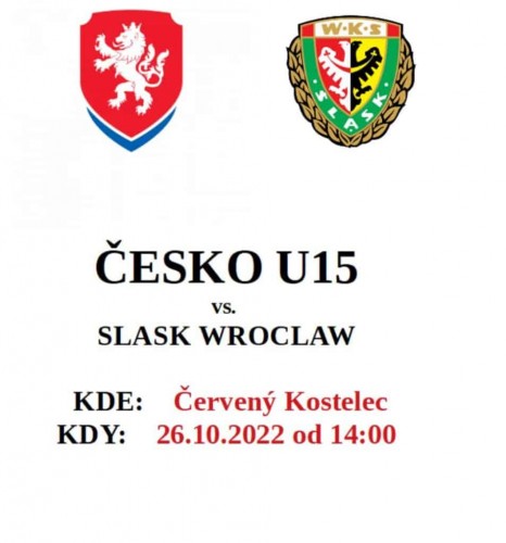Od 14:00 se na stadionu v Červeném Kostelci utká reprezentace ČR v kategorii U15 pod vedením trenéra Karel Havlíček s polským týmem Šlask Wroclaw.