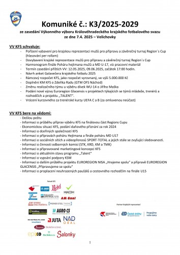 Komuniké č.: K3/2025-2029 ze zasedání Výkonného výboru